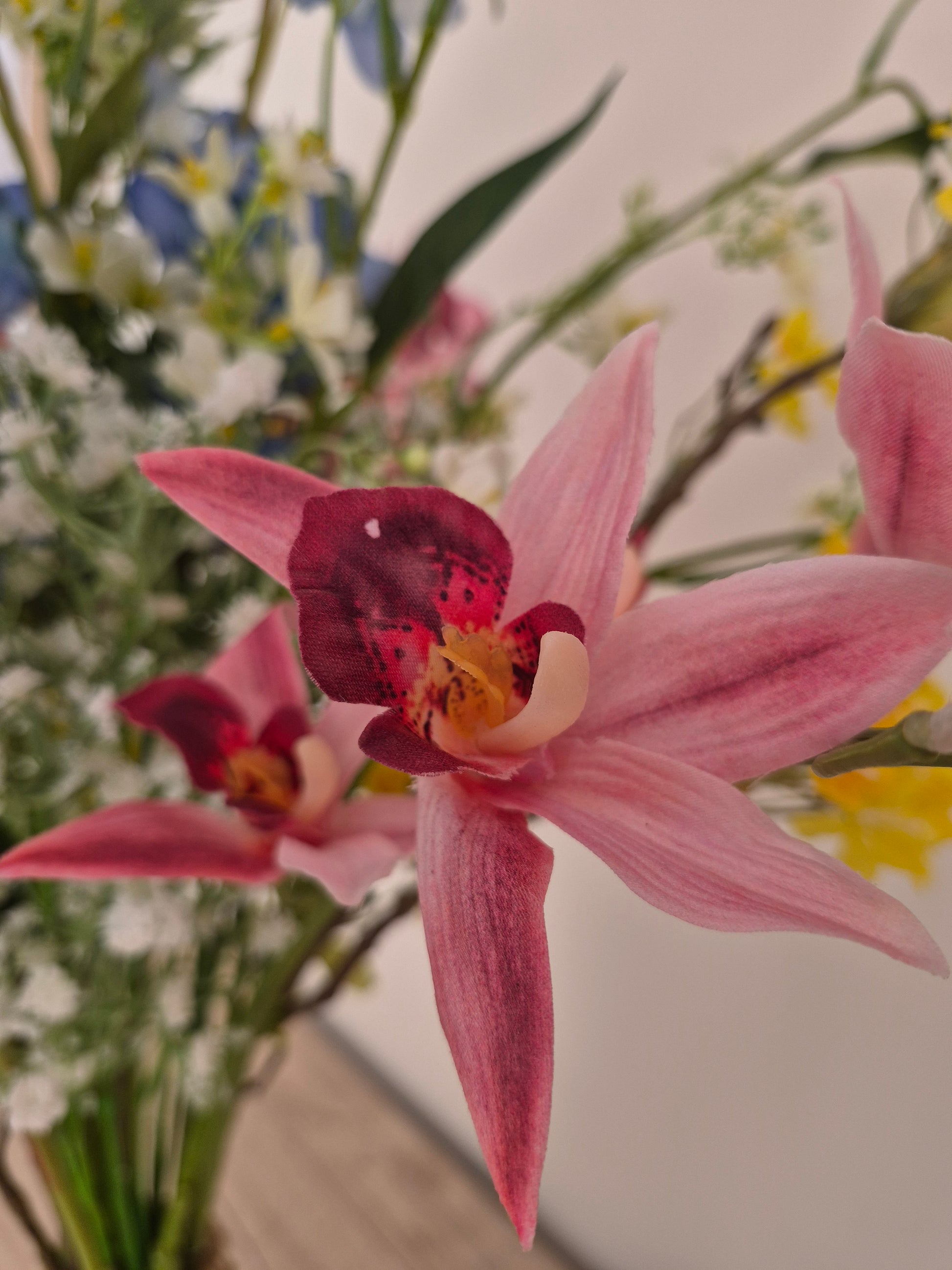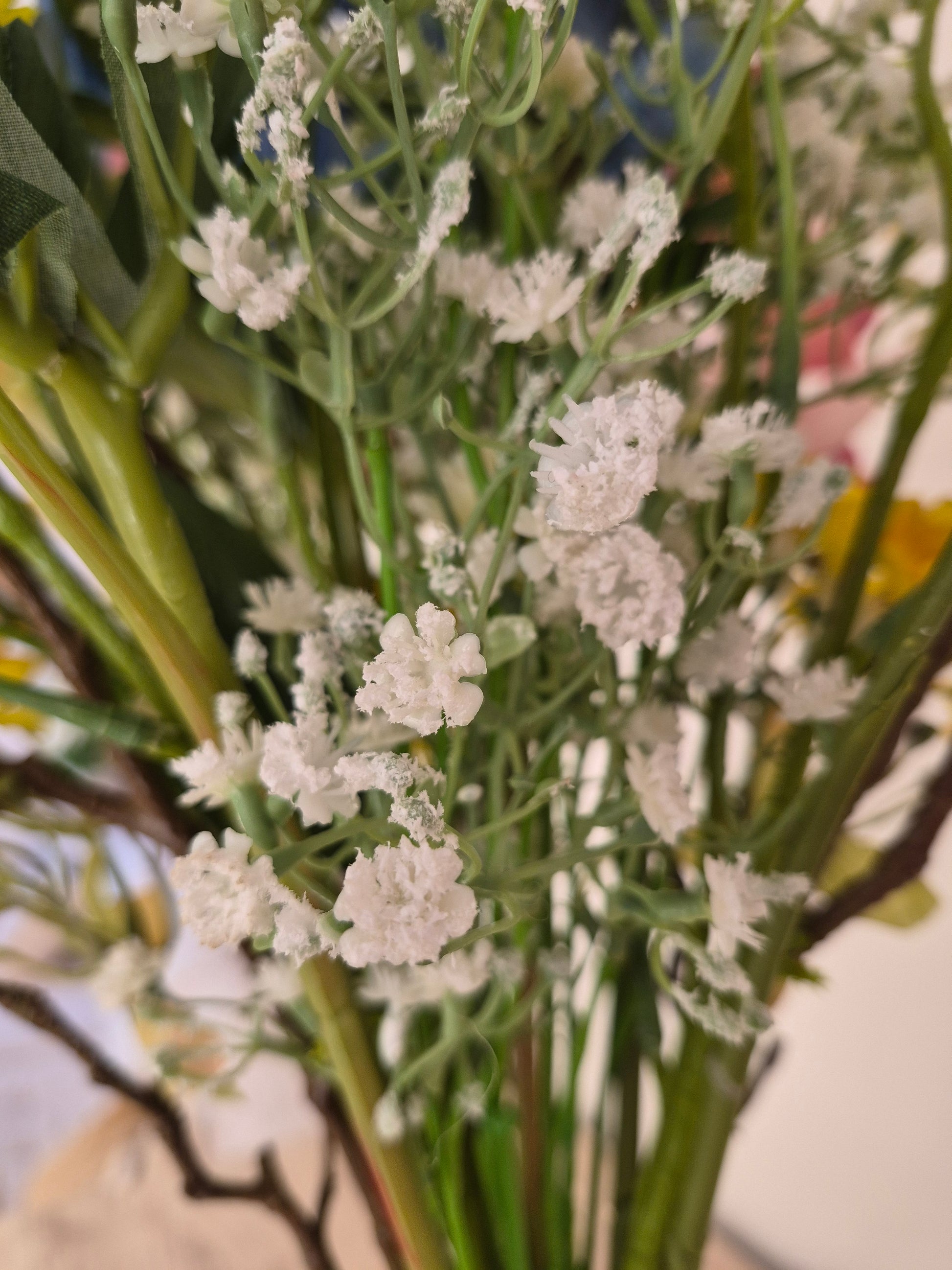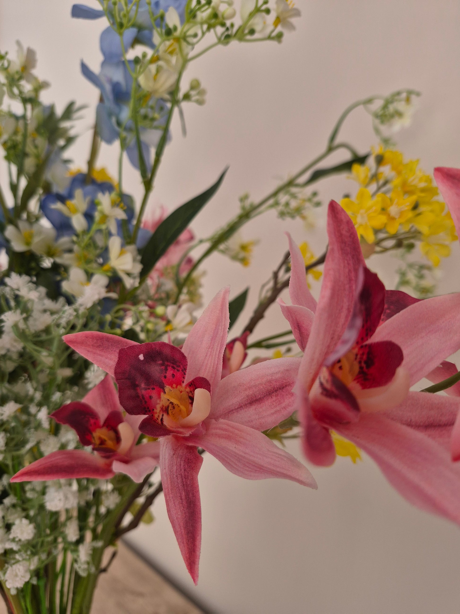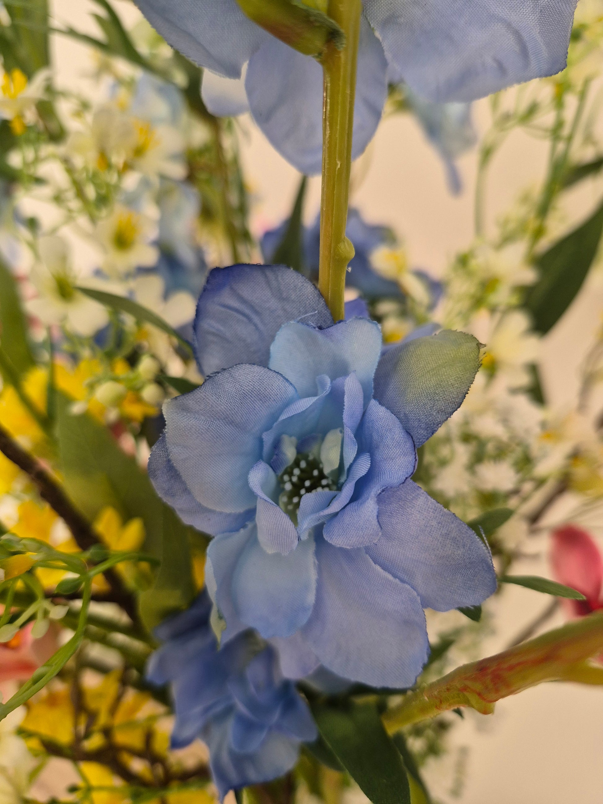 Dit prachtige zijden boeket brengt kleur, licht en levendigheid in huis. Het combineert frisse tinten met een speelse samenstelling die doet denken aan een lentetuin in volle bloei.